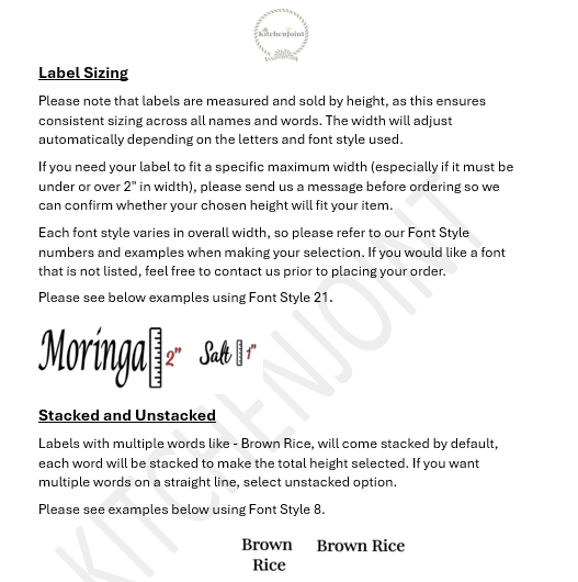 Available in multiple Heights and Fonts to fit tumblers, jars, canisters, pantry baskets and laptops.